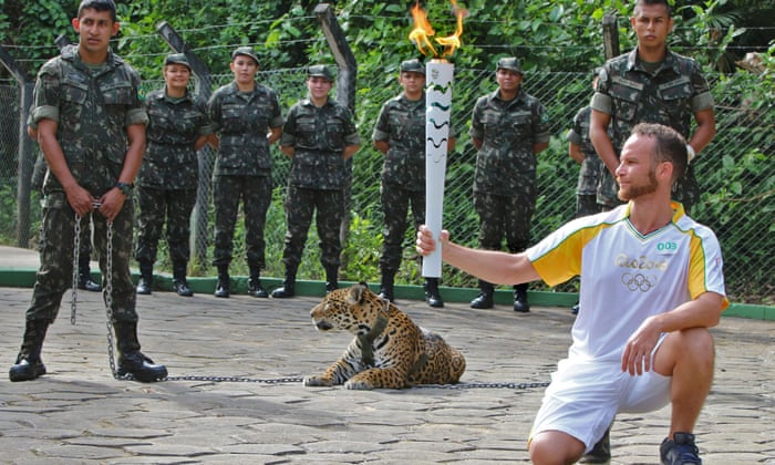 Os militares - que opera o zoológico onde Juma foi mantido - disse que o assassinato era necessário para proteger o time que estava tentando recuperá-la.Facebook Twitter Pinterest Jaguar morto um pouco depois de posar com a tocha olímpica no Brasil. Mas a morte provocou uma reação furiosa nas redes sociais e entre os defensores dos direitos dos animais.